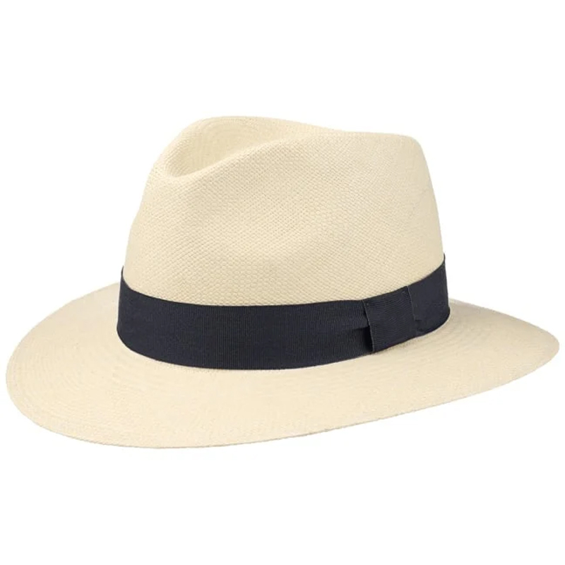 Premium quality Panama straw with its flexible, summery characteristics has been shaped to make this handmade Traveller, brought to you by Lierys. With a plain-coloured design and contrasting coloured grosgrain ribbon trim, embellished with a metal brand pin, the sophisticated straw hat is perfect for all discerning demands and skilfully rounds off a summer outfit at home or on holiday.